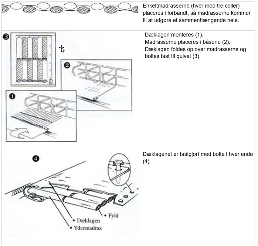 Køernes vurdering: Køerne lægger sig uproblematisk i sengene og står godt fast. Hvis der er tilstrækkeligt med strøelse, bliver madrasserne ikke glatte.