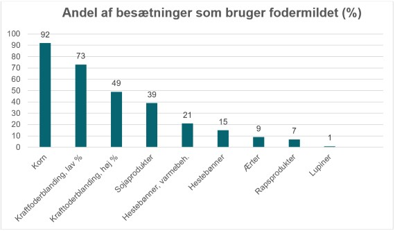 Figur 2. Andel af økologiske malkekvægbesætninger som fodrer med forskellige protein- og fedtkilder