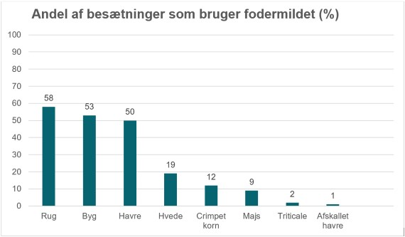 Figur 1. Andel af økologiske malkekvægbesætninger som fodrer med forskellige kornarter