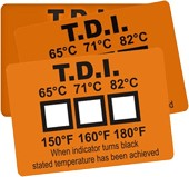 Fast acting self-adhesive temperature indicators. They change color from white to black when the temperature reaches a certain level. The color change is used as an indicator of the quality of the wash. The strips are used for example in washing tubs or for checking washing machines.