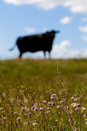 Billede 3. Eksempel på godt samarbejde mellem kvæg og natur – her er masser af blomster og kvæg, der trives godt. Foto: Anne Eskildsen, SEGES.