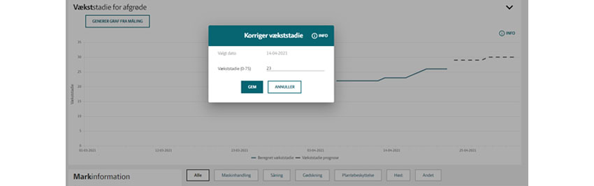 Det skal understreges, at selvom modellen giver et godt bud vækststadieudviklingen i dine marker, er det vigtigt også selv at følge udviklingen med observationer i marken.