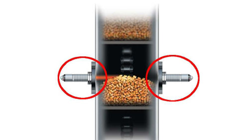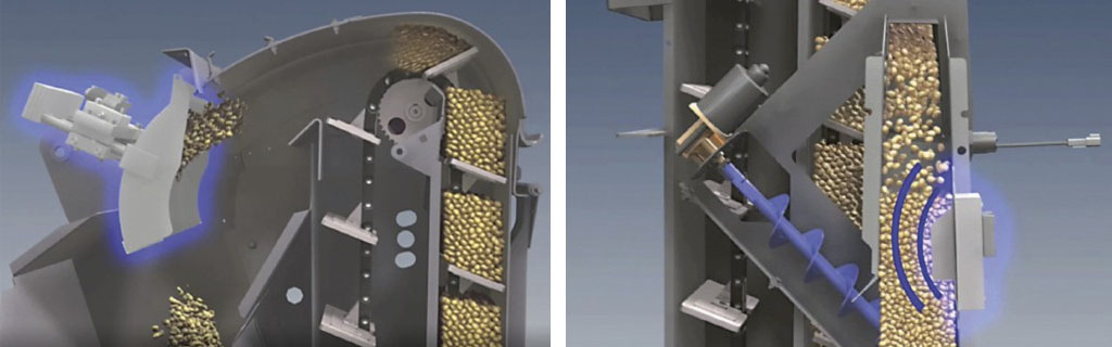 S-serie (rotor): Der tages en portion ud fra elevator, vandindholdet måles, og målekammeret tømmes. W/T-serie (rystermaskiner): Samme princip, men udtagningen foretages ved tanken.