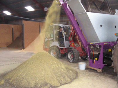 Rapsfrø valses med traktortrukket Murska valse fra Bulldog Agri.Foto: Jens Møller, Dansk Kvæg