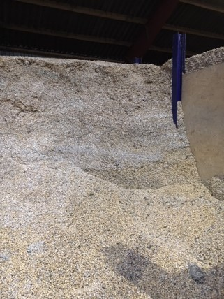Eksempel på kondensdannelse og efterfølgende vækst af skimmelsvampe i hestebønner på grund af for høj indlægningshøjde. Foto: Betina Røjen Amdisen, SEGES