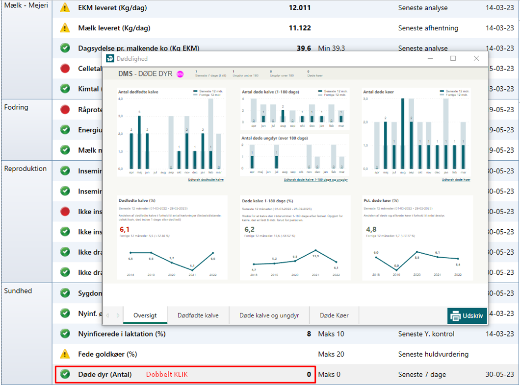 I rapporten kan du følge op på dødfødte og døde dyr og analysere: