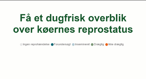 Fra listen "Repro-fokus køer" er der nu direkte og nem adgang til analysen "Reproduktionsstatus" som giver en grafisk og interaktiv visning alle køernes repro-status. Analysen gør det muligt at identificere problemkøer og arbejde i dybden med behandlingseffekt og inseminørbemærkninger.